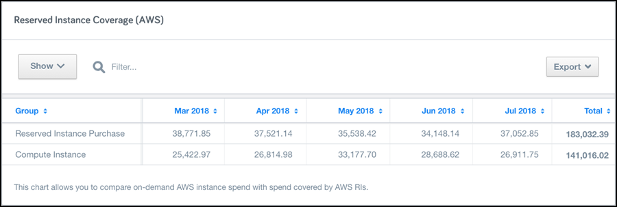 These reports shows you the proportion of monthly and daily AWS spend coming from Reserved vs On-Demand instances.